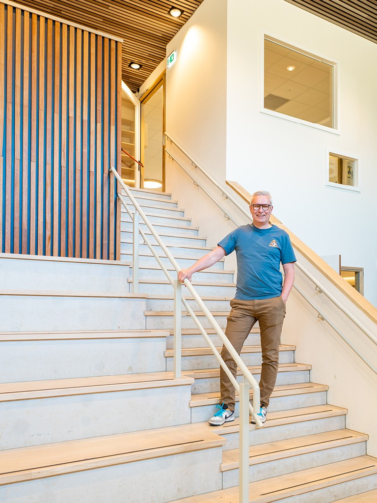De onderbouw en de bovenbouw waren verdeeld over twee panden van meer dan vijftig jaar oud, in dezelfde wijk. Nu zijn ze verenigd in één gebouw op de grootste locatie. ‘Die gebouwen waren echt op’, vertelt William. ‘Dus alles is beter dan wat we hadden. Maar mijn lat lag uiteraard hoger dan dat. Het moest precies zo worden als we voor ogen hadden, en dat is gelukt. Het schoolgebouw is niet alleen een echte eyecatcher, maar ook nog eens zo duurzaam mogelijk neergezet. Allemaal binnen de planning en op basis van een goede samenwerking. Ik ben erg trots op wat er nu staat. En als ik hier over twintig jaar met mijn rollator langsloop, ben ik dat nog steeds.’