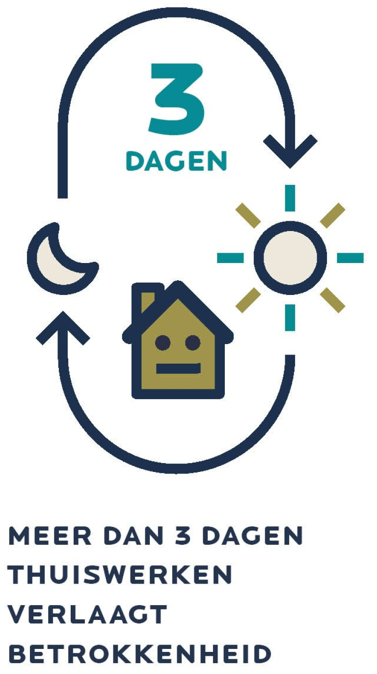 Onderzoek van PWC wijst uit dat de betrokkenheid omlaag gaat wanneer werknemers meer dan 3 dagen per week thuiswerken. Dat verzwakt de organisatiecultuur. De langetermijneffecten zijn: een hoger verloop, een hoger ziekteverzuim en een lagere productiviteit. Meer dan 3 dagen thuiswerken leidt bovendien tot meer isolatie, meer stress en een groter risico op burn-outs.