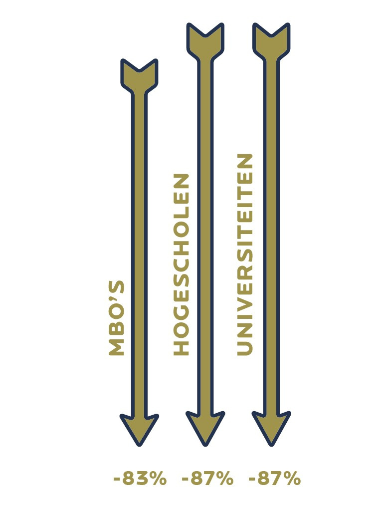 Mbo: 39,9 kWh/m² bvo | Hogescholen: 49,9 kWh/m² bvo | Universiteiten: 89,2 kWh/m² bvo*