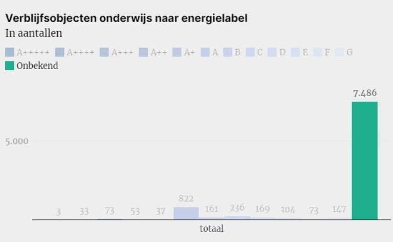 Uit een analyse van data uit de BAG- en KvK-registers blijkt dat van alle gebouwen met de functie onderwijs bijna 70 procent geen energielabel heeft. Relatief gezien hebben onderwijsgebouwen in stedelijke gebieden iets vaker een energielabel.