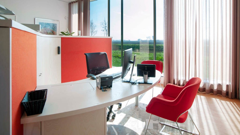 Van der Werf: ‘Het huisvestingsconcept van Altena is afgestemd op onder meer het dienstverleningsconcept en de organisatiefilosofie. In de dienstverlening werken wij zoveel mogelijk digitaal. Kan dat niet, dan gaan we bij inwoners op bezoek of maken een afspraak bij hen in de buurt. We laten ook documenten thuisbezorgen. Bij de organisatiefilosofie staat centraal dat het werk wordt georganiseerd vanuit opgaven. Aan een opgave kleven meestal verschillende aspecten, bijvoorbeeld gezondheid, huisvesting en milieu. Medewerkers uit verschillende disciplines vormen dan een gelegenheidscoalitie om eraan te werken. Dat kan zelfs samen met inwoners. Van ‘buiten naar binnen’ werken is namelijk een belangrijk principe. Belangrijk uitgangspunt bij de huisvesting was verder dat de totale huisvestingskosten na de fusie niet hoger mochten zijn dan daarvóór.’ Boterblom: ‘Voorheen hadden de drie gemeenten elk een eigen gemeentehuis. Altena heeft één centraal gemeentehuis in het voormalige kantoor van de Rabobank in Almkerk. Dit kwam op het juiste moment beschikbaar en ligt in het midden van de gemeente. Er werken hier zo’n tweehonderdvijftig ambtenaren. Daarnaast is er een tijdelijke locatie in het voormalige gemeentehuis van Aalburg. En er zijn vier wijklocaties in Aalburg, Woudrichem, Werkendam en Hank. Verder zijn er nog werven voor de collega’s van de buitendienst. In totaal werken er ongeveer vierhonderd mensen voor de gemeente Altena.’ Van der Werf: ‘De invulling van de locaties sluit aan op ons dienstverleningsconcept. Het gemeentehuis is bedoeld voor laagfrequente dienstverlening, zoals een paspoort of rijbewijs. De tijdelijke locatie wordt bemenst door de informatievoorziening en uitvoerders in het sociale domein. De beleidsmakers in het sociale domein zitten in het gemeentehuis, vanwege de noodzakelijke verbinding met andere disciplines. De wijklocaties zijn bestemd voor hoogfrequente dienstverlening op het gebied van bijvoorbeeld zorg en bouwvergunningen. Ambtenaren spreken hier met burgers.’