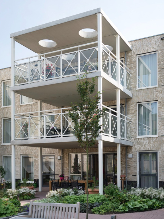 In het ontwerp van het gebouw, zowel buiten als binnen, was de doelstelling om vooral de nadruk leggen op het woonkarakter en dat het vooral géén instelling is. Hier gedijt de klantgroep wel bij. Bewoners krijgen een eigen volwaardig tweekamerappartement met een erker die uitkijkt op de omgeving, waarbij alle appartementen zijn georganiseerd rond een binnenhof. Ieder appartement komt uit op een binnenstraatje, waarin centraal een salon is gelegen voor het ontmoeten en waar men indien gewenst samen kan eten. In de twee gebouwvleugels refereert dit binnenstraatje aan de rondgang van een kloostertuin: er valt direct daglicht binnen en er is uitzicht op de binnenhof. De salons zijn vormgegeven als kamer-en-suite en hebben een groot terras of balkon aan de beschutte binnentuin. Deze binnentuin grenst aan de parochietuin, en vanaf de balkons is er zicht op de karakteristiek Sint Antionius Abt. Er is 24-uurs zorg aanwezig in de woonvorm.