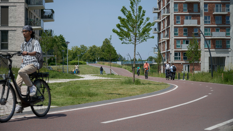 Het ontwerp van de openbare ruimte is op basis van het stedenbouwkundig ontwerp uitgewerkt door een landschapsarchitect van de gemeente, met aandacht voor hoogte reliëf waardoor auto’s aan de randen van het gebied gedeeltelijk uit het zicht blijven. In de uitwerking is gekozen voor openbestrating met ruimte voor groen.