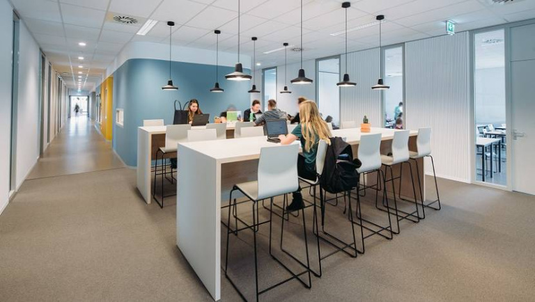 Door de entrees betreedt men direct de aula, die twee verdiepingen hoog is en het 'hart' van de school vormt. Vanuit de aula zijn alle domeinen te bereiken. De twee domeinen voor de bovenbouw en de special ‘Bèta’ zijn op de begane grond gesitueerd en de drie onderbouw-domeinen op de eerste verdieping met een eigen balkon. Hierdoor is de eerste verdieping een veilige haven voor de jongste kinderen mét uitzicht op de rest van de school.