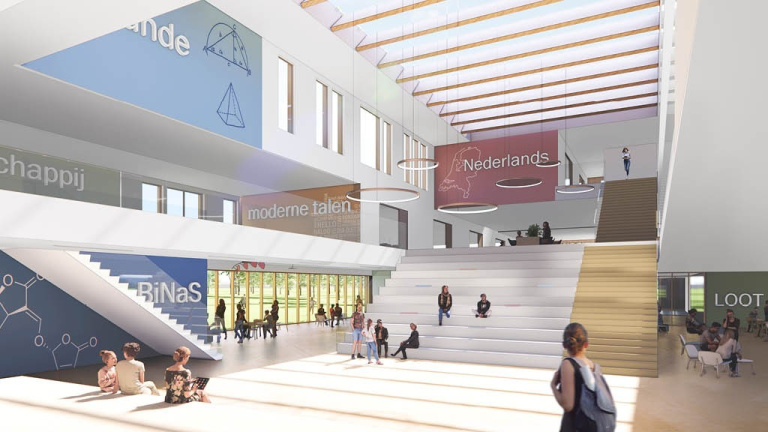 De nieuwbouw zal circa 13.800 m² bvo omvatten; ongeveer 11.600 m² bvo onderwijsruimte en circa 2.200 m² bvo sporthal (4 zaaldelen).