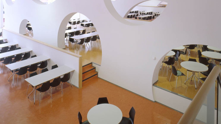 Het interieur bestaat uit een avontuurlijke aaneenschakeling van gangen en pleinen, van ontmoetingspunten en onderwijsruimten, van doorkijkjes en dwarsverbanden. Onder het pand is een parkeergarage voor 200 auto’s aangelegd. HEVO realiseerde dit project risicodragend, waarbij we als gedelegeerd opdrachtgever het project en de betrokken partijen aanstuurden. Om de opdrachtgever volledig te ontzorgen stelden we ons bovendien garant voor de kwaliteit van het nieuwe pand en het projectbudget.