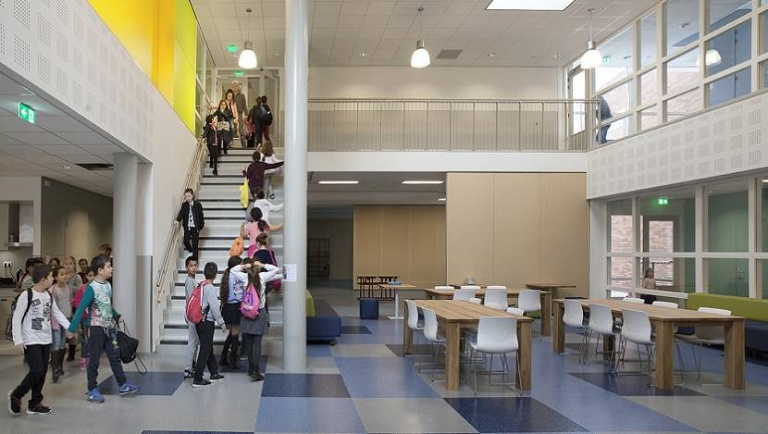 Met een montessori- en een jaargroep-afdeling beschikt de school over twee vormen van onderwijs. Maar eigenlijk passen alle onderwijsvormen in het toekomstbestendige schoolgebouw. Kleinschaligheid en flexibiliteit zijn gewaarborgd in units van 4 of 5 lokalen die zijn geclusterd rondom leerpleinen. Om samenwerking tussen de groepen binnen een unit te stimuleren, zijn de lokalen met brede transparante schuifdeuren verbonden met de leerpleinen en hierdoor met elkaar.