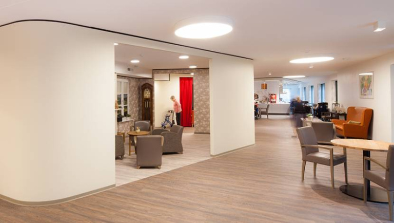 Voor de bewoners is er de mogelijkheid om op bepaalde momenten van de dag in de anonimiteit weg te duiken of juist eerder een gelijkgestemd persoon te vinden, iets dat in kleine groepen veel moeilijker is. De grote ruimte die beschikbaar is, is ingericht met belevingsgerichte activiteiten waardoor de bewoners gestimuleerd worden om zich zelf bezig te houden. Naast de woonslaapkamer is er een woonkamer, een grand café, een kleine bioscoop, een schoonheidssalon, een bibliotheekje en een muziekkamer.
